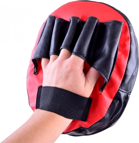 - druhý si vezme odrazovú podložku, ktorá má pohodlné úchyty na prsty a nastaviteľný remienok na suchý zips. Podložka zaručuje bezpečnosť a pohodlie počas tréningu.