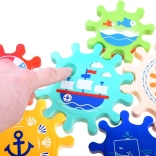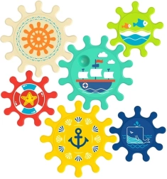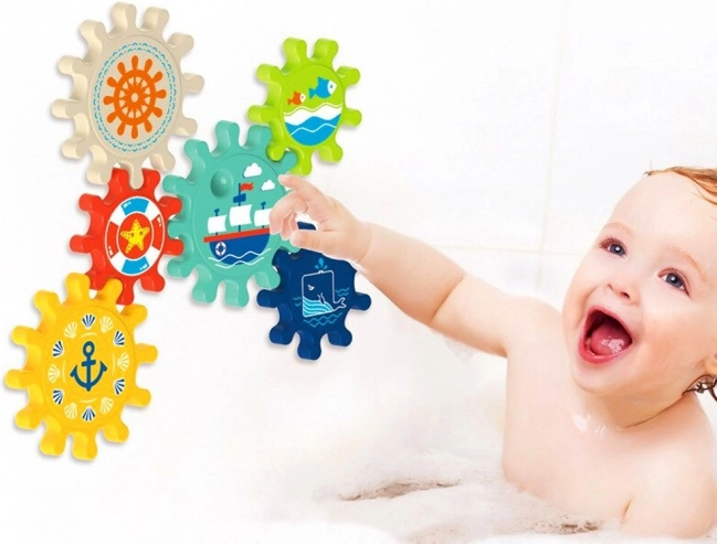 Obohaťte čas kúpania o skvelú zábavu s touto súpravou farebných ozubených koliesok, ktoré môžete jednoducho pripevniť na stenu vane alebo sprchy. Deti milujú otáčanie ozubených koliesok a sledovanie, ako sa celá súprava pohybuje, čo pomáha pri rozvoji jemnej motoriky aj logického myslenia.
