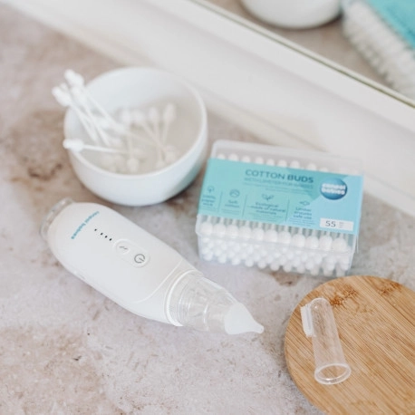 Perfektný doplnok pre starostlivosť o dieťa a navyše 100 % prírodný! Špeciálny, anatomický tvar vatových tyčiniek zabraňuje príliš hlbokému vloženiu do nosovej dierky alebo do uška dieťaťa. Tyčinka je vyrobená zo 100 % papiera — ekologická alternatíva k plastovým tyčinkám. Vatová koncovka je vyrobená zo 100 % bavlny. Tvar bavlnenej časti s omezovačom zaisťuje bezpečné použitie. V balení nájdete 56 ks. Návod na použitie: Konce vatových tyčiniek môžete navlhčiť sterilným roztokom. Nevkladajte tyčinku hlboko do nosa alebo do ucha. Pri ich použití dbajte zvýšenej opatrnosti – nezabudnite, že sa dieťa pri čistení môže pohnúť. Upozornenie! Dôležité pre bezpečnosť a zdravie vášho dieťaťa! Pred každým použitím skontrolujte kvalitu výrobku. Výrobok nie je hračka. Uchovávajte mimo dosahu dieťaťa. Tyčinky zodpovedajú požiadavkám: Smernica Európskeho parlamentu a Rady 2001/95/EC o všeobecnej bezpečnosti výrobkov