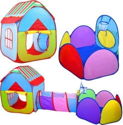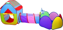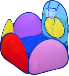 Farebný detský stanový set 3v1 spája domček, tunel a ohrádku s košom na loptičky pre nekonečnú zábavu doma aj na záhrade. Ľahká konštrukcia, rýchle rozkladanie a skladanie, priedušné okienka a skladací dizajn robia z tohto setu ideálny priestor na hranie, lozenie aj hádzanie loptičiek.