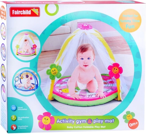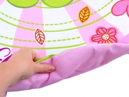 Podložka je vybavená pestrofarebnými vzormi, ktoré upútajú detskú pozornosť a stimulujú ich zmysly pre farby a tvary.