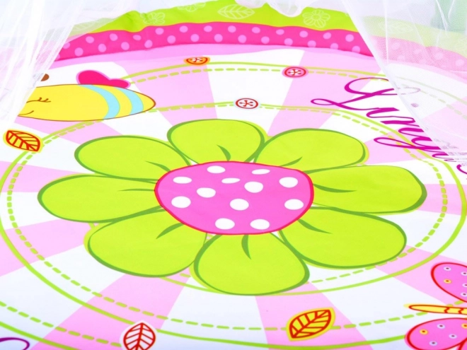 Detská hracia podložka je navrhnutá tak, aby vytvárala bezpečné a pohodlné miesto pre vaše dieťa. Jej jasné farby a mäkký materiál sú ideálne pre každodenné hranie alebo relaxáciu. Podložka je vybavená oblúkmi s kvetinami a moskytiérou, ktoré chránia pred hmyzom a zvyšujú atraktivitu pre deti.
