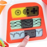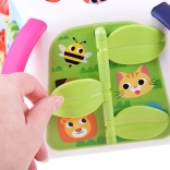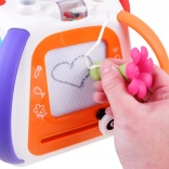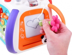 Vstavaný zmazávací záznamník so štýlusom v tvare kvetu podnecuje prvé tvorivé krôčiky. Posuvné panely vytvárajú ilúziu pohybu a zábavnú vizuálnu hru.