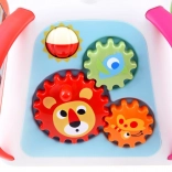 Klavírové klávesy v tvare krokodílích zúbkov učia tóny hravou formou. Otáčaním kľuky uvediete do pohybu tri farebné kolieska so zvieratkami.