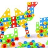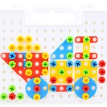 Táto kreatívna stavebnica pre malých kutilov ponúka neobmedzené možnosti stavania. Deti si môžu vytvárať 2D obrázky aj 3D modely pomocou perforovanej dosky, skrutiek a pestrých dielikov v rôznych tvaroch. Kufrík s rukoväťou zaistí ľahké prenášanie aj prehľadné ukladanie všetkých komponentov.