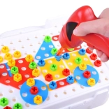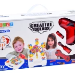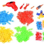 Súčasťou je detská elektrická vŕtačka na 2× AA batérie, skrutkovač a kľúč, ktoré umožnia skutočné skrutkovanie a rozskrutkovanie konštrukcií. Vďaka tomu deti trénujú jemnú motoriku, koordináciu oko–ruka aj trpezlivosť a zároveň rozvíjajú kreativitu a technické myslenie.