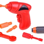 Elektrická vŕtačka na 2× AA batérie, skrutkovač a kľúč umožnia deťom reálne montovať aj demontovať modely – trénujú jemnú motoriku a samostatnosť.