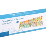 - Tabuľa s kolíkmi, drevené číslice, farebné krúžky, ilustrácie zvieratiek