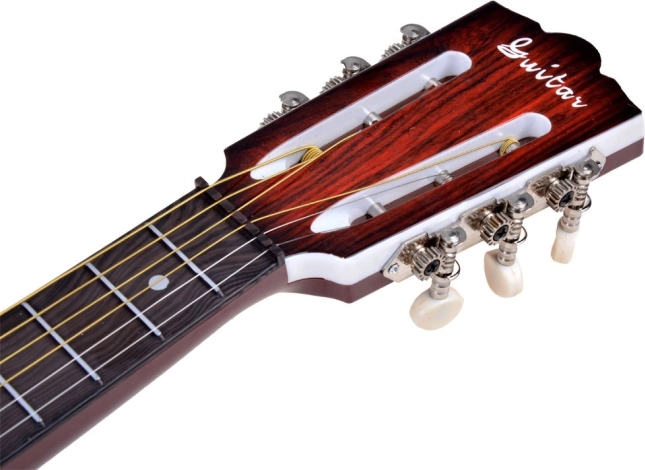 Hlavica s mechanikami umožňuje upraviť napätie strún a doladiť hru podľa potrieb začiatočníka.