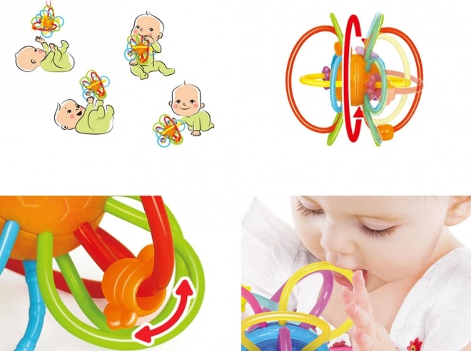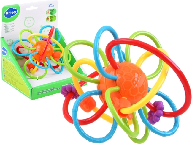 Pri hraní si dieťa precvičuje jemnú aj hrubú motoriku – uchopovanie, triasenie, kotúľanie aj hádzanie. Kontrastné, no upokojujúce farby rozvíjajú zrak a pomáhajú rozlišovať tvary, farby aj textúry. Hryzadlo je ľahko umývateľné teplou vodou, takže údržba je rýchla a hygienická.