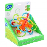 Prepletené pružné slučky umožňujú istý úchop z akéhokoľvek uhla a podporujú rozvoj jemnej motoriky a koordinácie ruka–oko.