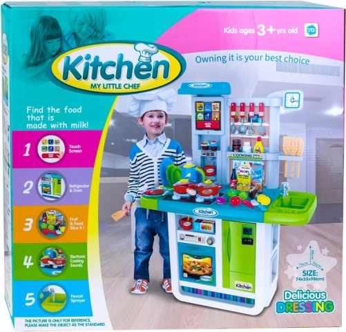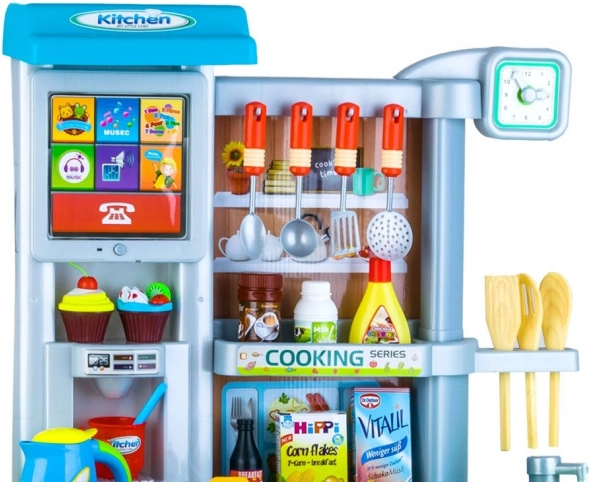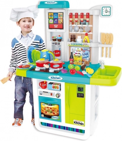 Dva horáky so svetlami a zvukom, rúra a kávovar vytvárajú autentickú atmosféru kuchyne. Deti môžu „variť“, piecť a servírovať ako skutoční šéfkuchári.