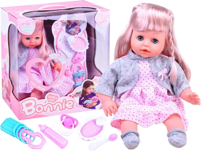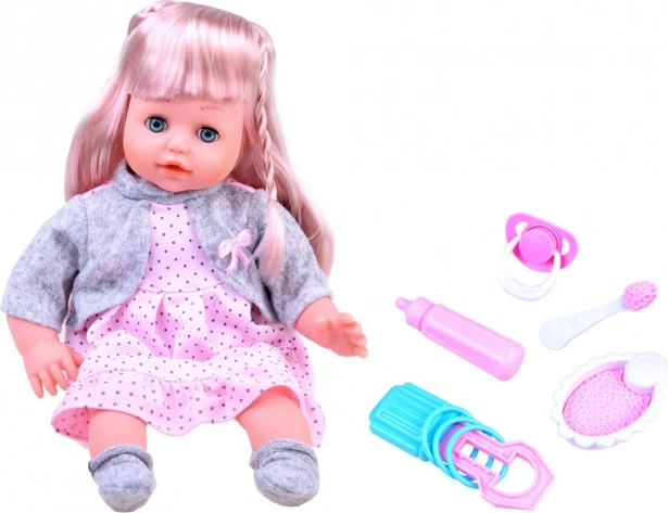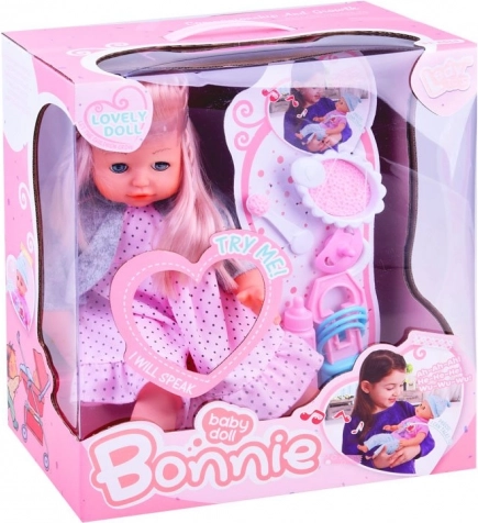 Po stlačení bruška alebo ručičiek bábika prehovorí či vydá zvuky, ktoré robia hru ešte interaktívnejšou a rozvíjajú empatické zručnosti dieťaťa. Súčasťou je sada doplnkov na kŕmenie a starostlivosť, vďaka ktorým sa deti ľahko zahrajú na malú mamu či otca.