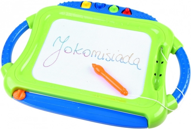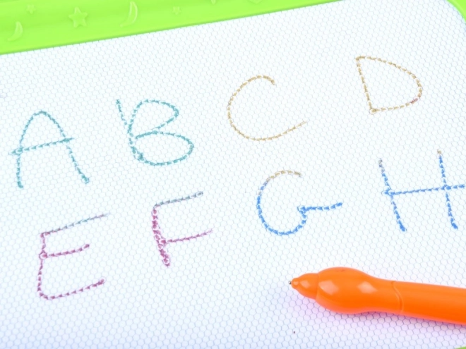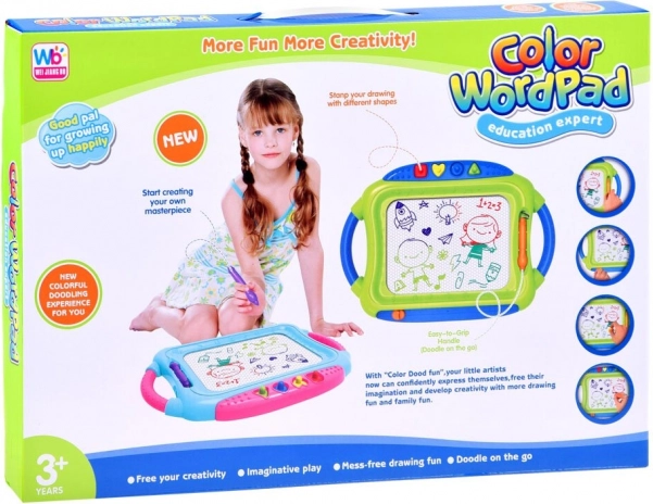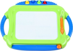 Táto farebná magnetická tabuľa ponúka deťom možnosť kresliť, písať a otláčať tvary bez potreby papiera a pasteliek. Štvorfarebné pole sa mení podľa miesta kreslenia, vďaka čomu sú obrázky živé a pútavé. Všetko ľahko zmažete posuvným mazátkom – a môže sa tvoriť znova.
