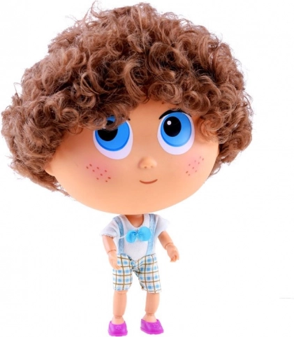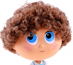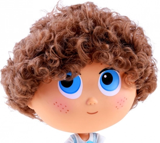 Veľké modré oči, jemné pehy a kučeravé hnedé vlasy dodávajú bábike výnimočný charakter a priateľský úsmev.