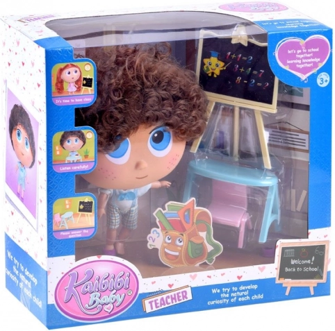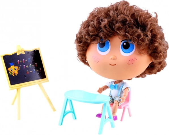 Roztomilá bábika učiteľ Tymek na hru na školu prináša deťom veľa fantázie aj zábavy. V balení nájdete tabuľu, stôl a stoličku. Bábika má pohyblivé kĺby a hlavu otočnú o 360°, veľké modré oči, pehy a kučeravé vlasy. Skvelé na rolové hry a rozvoj kreativity.
