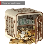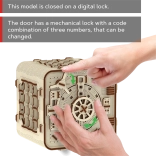 3D puzzle trezor od Wooden City je ideálnym darčekom pre milovníkov hádaniek a krásnych dizajnov. Tento funkčný model napodobňuje mechanizmus bankového trezoru s trojčíselnou kombináciou, ktorú možno kedykoľvek zmeniť. Trezor obsahuje aj tajnú funkciu, ktorá vám pomôže v prípade zabudnutého kódu. Vzhľad umocňuje rukoväť na ľahké prenášanie a policový priestor vo vnútri.