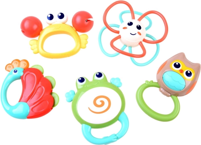 Kolekcia hrkáliek ponúka päť rôznych hračiek v tvare zvieratiek, ktoré sú navrhnuté pre bezpečnú manipuláciu malými detskými rúčkami. Tieto hrkálky nielen zabavia vaše dieťa, ale tiež podporujú jeho senzorický a motorický rozvoj.