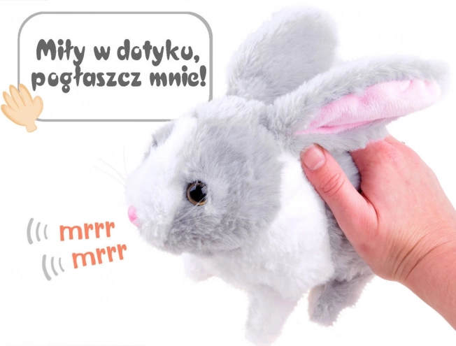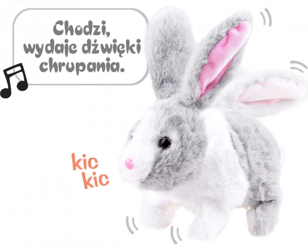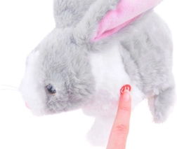 Tento roztomilý plyšový zajačik je skvelou voľbou pre deti, ktoré túžia po zvieratku. Kombinuje hebký plyš s realistickými interaktívnymi funkciami, takže pôsobí ako skutočný miláčik – skáče dopredu, hýbe uškami a noštekom, reaguje na dotyk a pri kŕmení vydáva zvuky chrumkania.