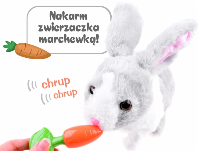 Súčasťou balenia je mrkva. Keď ju priložíte k tlamičke, zajačik vydáva realistické zvuky chrumkania – ideálne na hranie sa na kŕmenie.