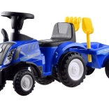 Detské odrážadlo traktor New Holland s prívesom je perfektnou voľbou pre každého malého milovníka traktorov. Vyrobený z odolného plastu, zaručuje dlhú životnosť a bezpečie pri hre. Traktor je vybavený pohodlným sedadlom s opierkou a funkčným volantom, čo umožňuje jednoduché riadenie a ovládanie smeru.