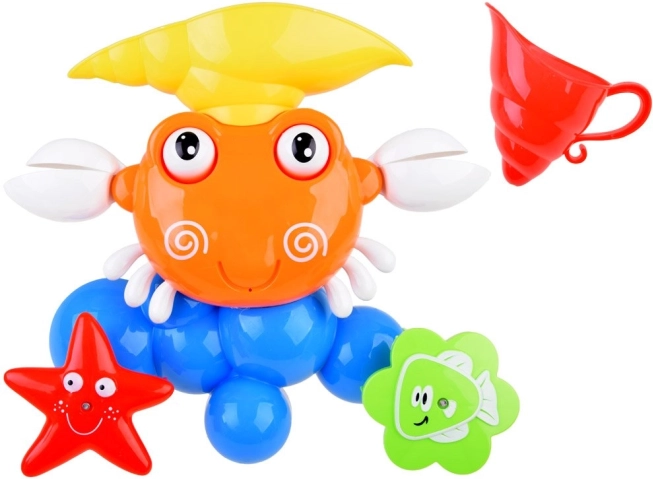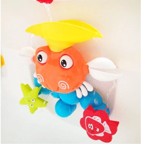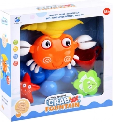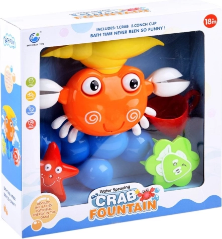 Farebný krab s fontánkou premení každé kúpanie na zábavné vodné predstavenie. Stačí naliať vodu do nádobky na hlave – roztočia sa kolieska, pohnú sa oči a klepetá a z krabej pusy vytryskne malá fontánka. Hračka sa jednoducho pripevní pomocou silných prísaviek na obklady, vaňu či sprchové dvere.