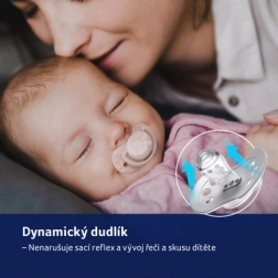Dynamický cumlík LOVI, vytvorený v spolupráci s logopédmi, zabezpečuje prirodzený a zdravý vývoj detskej ústnej dutiny. Výrazne sa rozťahuje a sťahuje podľa rytmu sania.