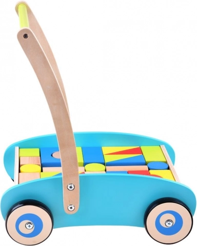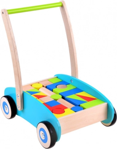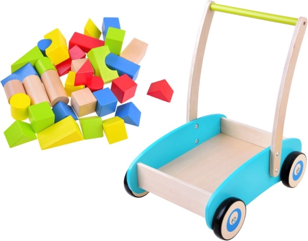 Chodítko má gumové návleky na kolesách, ktoré zabezpečujú tichý a ľahký pohyb po podlahe. Drevené kocky, napriek svojej jednoduchosti, sú jednou z najlepších foriem zábavy pre deti. Pomáhajú v rozvoji ich kreativity a logiky.