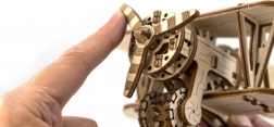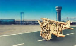Stavebnica je vyrobená z kvalitnej brezovej preglejky a skladá sa bez nutnosti použitia lepidla či náradia. Rozmery zloženého modelu sú cca 16,1 x 14 x 8,8 cm. Stane sa skvelým darčekom pre milovníkov lietadiel a zaručí hodiny zábavy a poznania mechanických prevodov a ozubených koliesok.