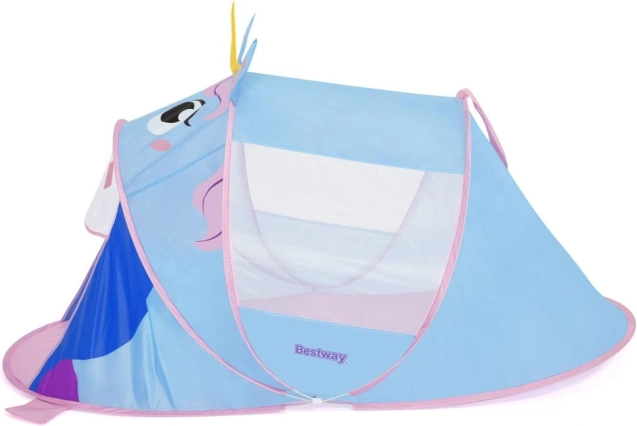 Roztomilý detský pop-up stan v tvare jednorožca od značky BESTWAY premení každú izbu, záhradu aj pláž na rozprávkové kráľovstvo. Vďaka rýchlemu samorozloženiu, ľahkému materiálu a sieťovaným okienkam na vetranie je ideálny na kreatívne hranie aj oddych. Podlaha zabezpečí čisté a pohodlné prostredie a rozmery 182 × 96 × 81 cm ponúknu dosť miesta na hru aj malý oddych.