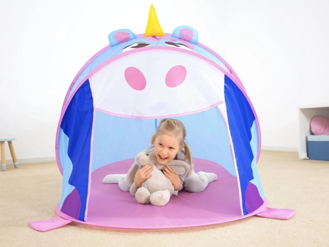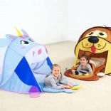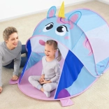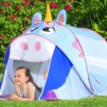 Objavte kúzlo imaginárnej hry s hracím stanom v tvare jednorožca, ktorý nadchne deti veselými farbami a prívetivým dizajnom. Stan sa sám rozloží behom chvíľky, takže je pripravený na zábavu doma, na terase, na záhrade aj pri vode. Odolná polyesterová tkanina a sieťované bočné panely zaistia dobrú cirkuláciu vzduchu a prehľad pre rodičov.