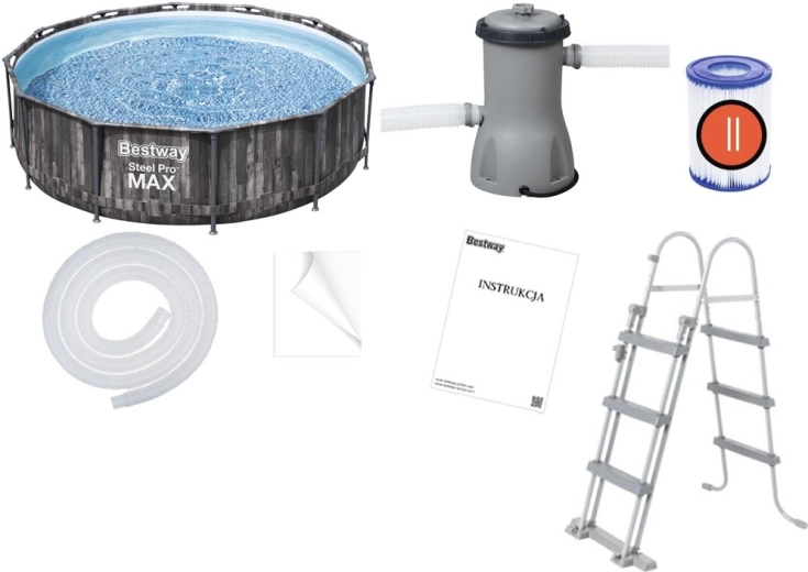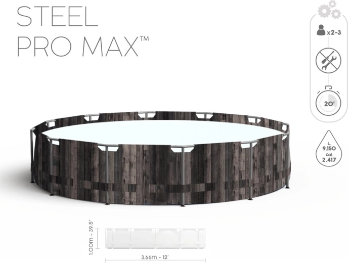 Užite si leto naplno so samonosným záhradným bazénom BESTWAY Steel Pro MAX s rozmermi 366 × 100 cm a s atraktívnym dreveným dekorom. Odolná konštrukcia Steel Pro MAX s konektormi FrameLink System zaručuje stabilitu a ochranu proti korózii, zatiaľ čo trojvrstvový materiál DuraPlus prináša výnimočnú pevnosť a dlhú životnosť. Súčasťou balenia je filtračné čerpadlo, rebrík a príslušenstvo pre čistú vodu a bezpečný vstup.