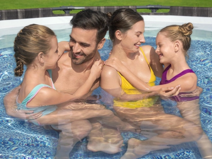 - Veľký objem 9 150 l (pri 90 % naplnení) – dostatok miesta na plávanie a vodné radovánky.