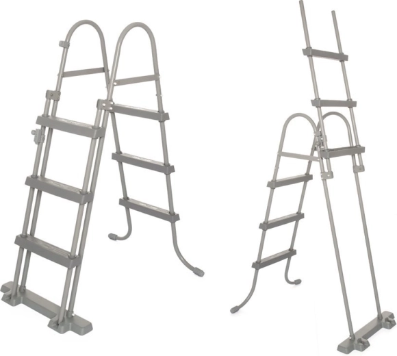 Robustný rebrík uľahčuje vstup aj výstup z bazéna. Výklopné stupne pomáhajú obmedziť prístup detí bez dohľadu dospelých.