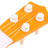 Nastaviteľný krk a 4 struny umožnia deťom skúšať prvé akordy a jednoduché melódie.