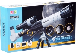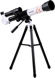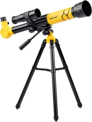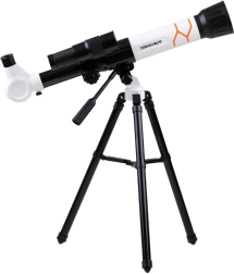 Tento ľahký a jednoducho prenosný detský teleskop je skvelou voľbou pre malých nadšencov astronómie. Optická sústava typu luneta so šikmým zrkadielkom zabezpečuje vyšší kontrast a lepšiu korekciu vád obrazu, takže detaily na povrchu Mesiaca budú jasnejšie. Tri vymeniteľné okuláre poskytujú priblíženie až 40x, čo je ideálne na prvé kroky vo svete pozorovania oblohy.