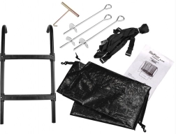 Rebrík, kotvy s popruhmi, krycia plachta proti dažďu aj nástroj na napínanie pružín – všetko pre jednoduchú montáž a bezpečné používanie.