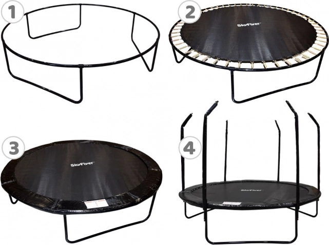 - trampolínu s čierno lakovanou konštrukciou a ochranným lemom pružín,