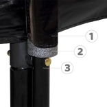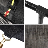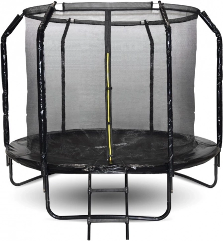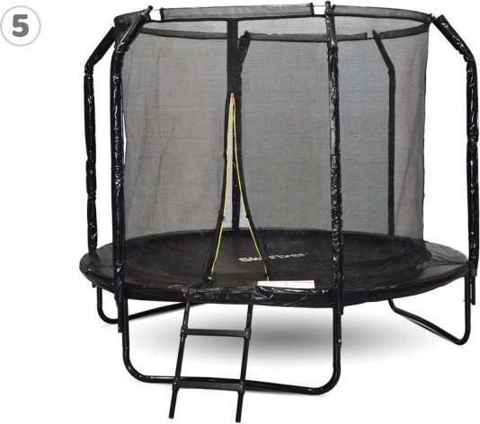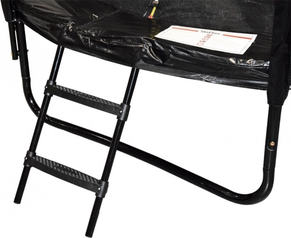 Skákacia plocha z polypropylénu JUMPING MAT je prešívaná 8 pevnostnými švami, čo zvyšuje odolnosť proti namáhaniu. Profilované kovové stĺpiky sú kryté mäkkou ochrannou penou a vchod do trampolíny má dvojité istenie (zips + pracka). Na jednoduchý nástup poslúži dvojstupňový rebrík.