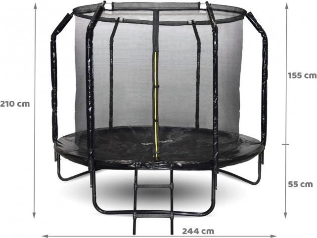 Trampolína SKYFLYER s priemerom 244 cm je skvelou voľbou pre rodiny, ktoré chcú podporiť aktívny pohyb detí aj dospelých. Robustná konštrukcia s U nohami, silné pružiny a hustá ochranná sieť so stabilnou obručovou výstuhou zabezpečujú maximálnu bezpečnosť a stabilitu pri skákaní.