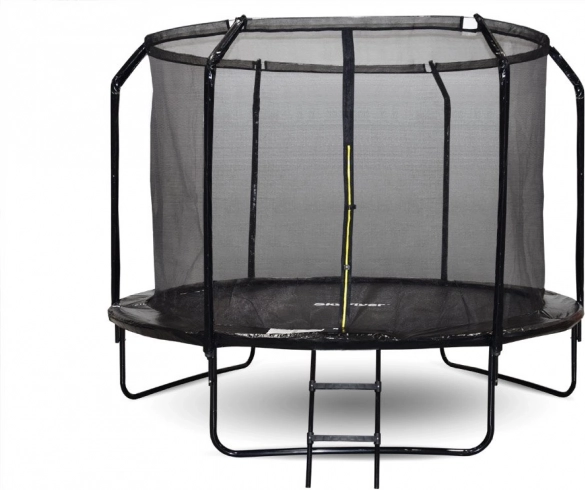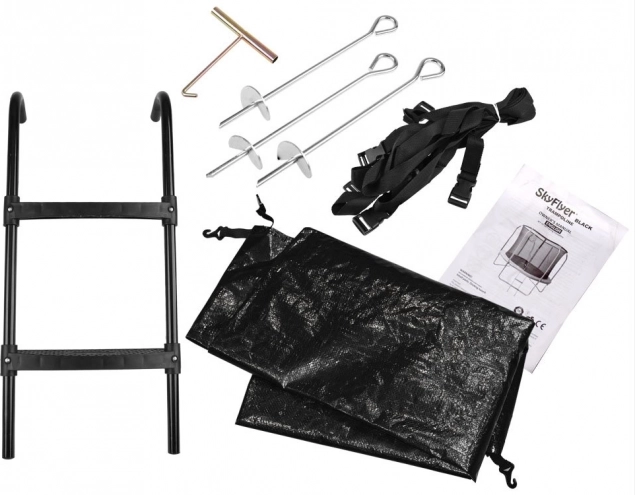 V balení nájdete všetko potrebné: rám s čierno lakovanými trubicami, rebrík pre pohodlný vstup, kryt pružín (pad), silné oxidované pružiny, vodoodolný poťah a praktické príslušenstvo vrátane kľúča na naťahovanie pružín. Vďaka premyslenej konštrukcii (skrutky z vnútornej strany) je vonkajší obvod hladký a bezpečný.