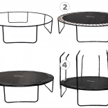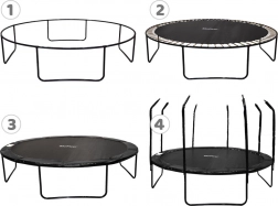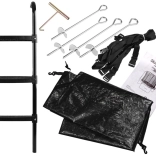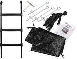 - Rebrík, ochranná sieť, šnúra na fixáciu siete, kotvy s popruhmi, vodoodolný kryt, ochranný límec pružín, kľúč na pružiny, montážny návod