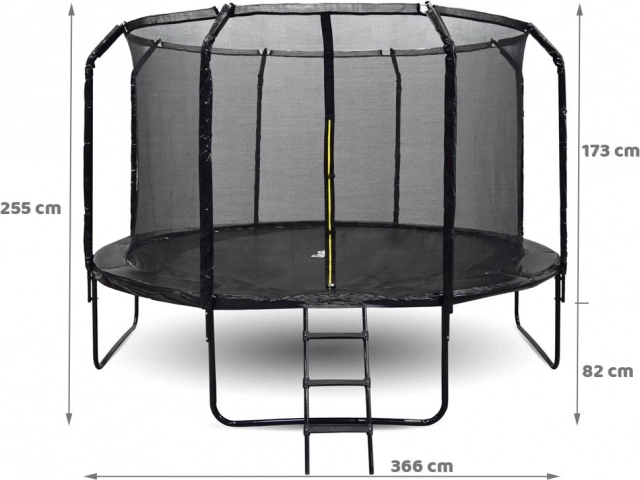 Premeňte svoju záhradu na miesto zábavy a zdravého pohybu. Trampolína SKYFLYER 366 cm kombinuje robustnú konštrukciu s premyslenými bezpečnostnými prvkami: vnútorná ochranná sieť s krúžkom na napnutie, polstrované, profilované stĺpiky a double-secure vstup na zips a pracku. Skákacia plocha z odolného Jumping Mat PP materiálu je viackrát prešitá (8 švov), čo zaisťuje dlhú životnosť aj pri intenzívnom používaní.
