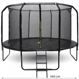 Rodinná záhradná trampolína SKYFLYER s priemerom 366 cm prináša bezpečnú zábavu aj kondičný tréning pre deti aj dospelých. Vďaka vysokej bezpečnostnej sieti, pevnej skákacej ploche z PP, profilovaným stĺpikom s mäkkým polstrovaním a stabilným U-nohám si užijete skákanie bez starostí. Súčasťou je rebrík, kotvy s popruhmi a plachta/poklop – všetko pre maximálnu bezpečnosť a pohodlie.
