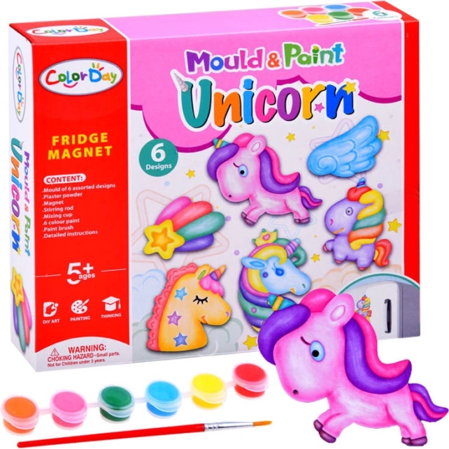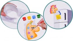 Tento úžasný set umožňuje deťom vytvárať magnetky na chladničku v tvare obľúbených jednorožcov. Dieťa si musí vlastnoručne pripraviť odliatok a potom ho namaľovať podľa vlastnej fantázie. Set umožňuje vytvorenie 6 rôznych magnetiek.