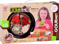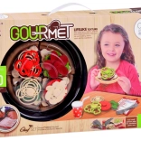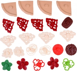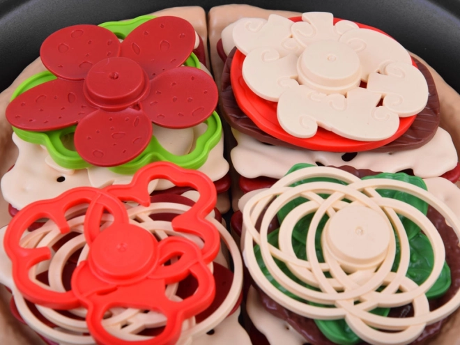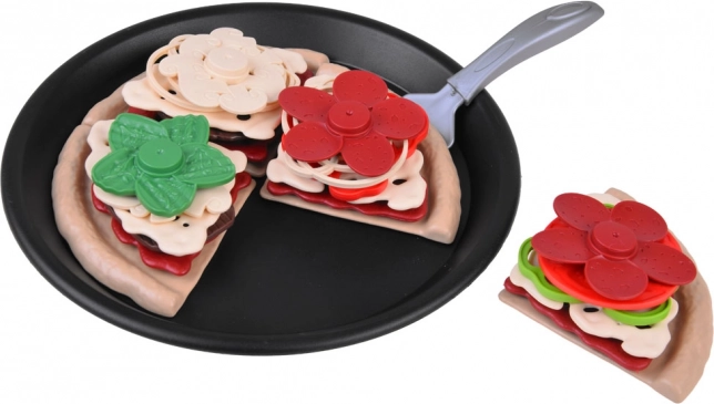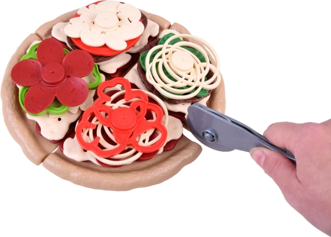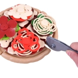 Pizza je rozdelená na dieliky a dá sa ľahko „krájať“ plastovým kolieskom. Deti si precvičia jemnú motoriku a zažijú realistickú prípravu pokrmu.