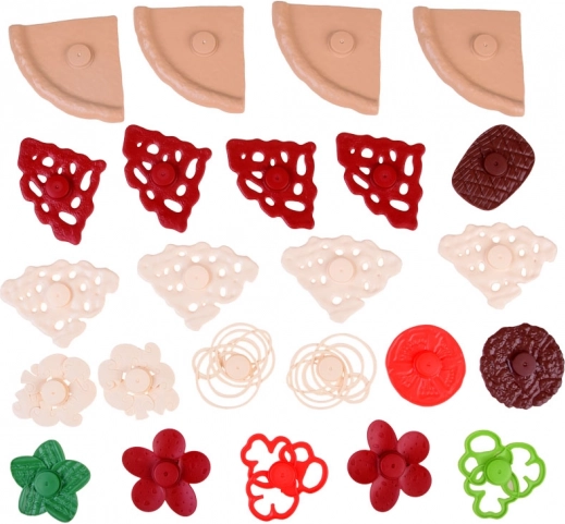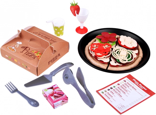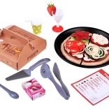 Súčasťou sú diely cesta, omáčka, plátky syra a mnoho farebných toppingov ako pepperoni, huby, paprika, paradajka či šalát. Nechýba koliesko na krájanie, lopatka na pizzu, príbory, tanier, nápojové kelímky, menu ani krabička na pizzu.