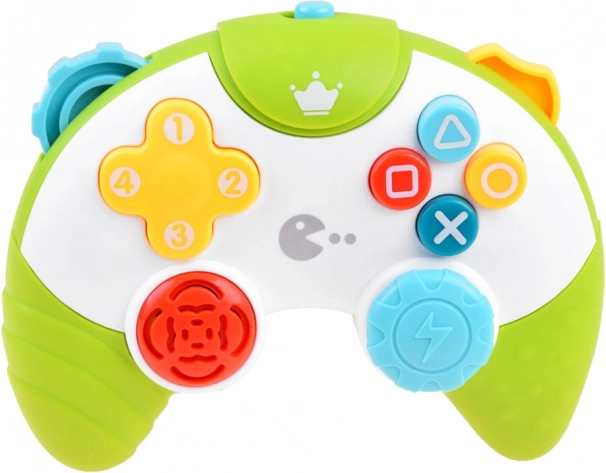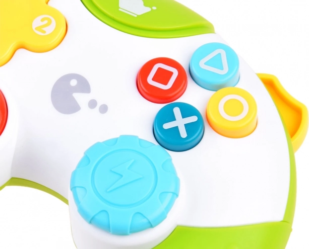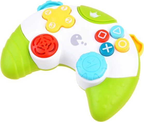 Tento hudobný interaktívny ovládač vyzerá ako skutočný gamepad a láka deti pestrými farbami, svetelnými efektmi a veselými melódiami. Najväčšie tlačidlo umožňuje deťom „skladať“ vlastné zvukové sekvencie, čo prirodzene podporuje kreativitu a hudobné cítenie.