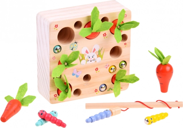 Drevená hra s mrkvičkami a červíkmi