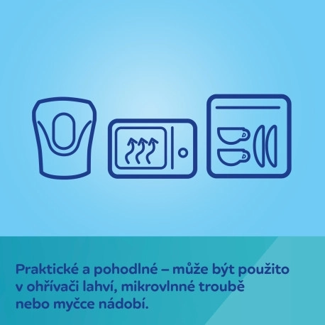 Možno použiť v ohrievači fliaš, mikrovlnnej rúre aj v umývačke riadu.